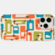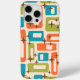 Colourful Retro Mid Century Modern Abstract Pattern in Brown Orange Green & Blue.