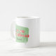 This coffee mug showcases mid-century modern 1950s-inspired typography and is accented with charming starbursts and snowflakes, presented in light green and red tones. Personalise this nostalgic mug with your name.