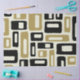 Retro Mid Century Modern Abstract Pattern Black White & Gold.