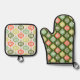 Retro Mid Century Red & Olive Green Christmas Oven Mitt & Pot Holder Set