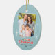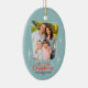 A photo Christmas ornament offering a retro flair typical of the 1950s and 60s and is a perfect way showcase holiday memories. This mid century modern design features a muted teal background accented by starbursts, snowflakes and vintage-inspired typography.