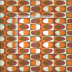 This atomic era-inspired abstract art pattern has ovals inside rectangles in various shades of orange and brown.