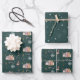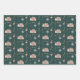 Retro Midcentury Pink House Christmas Pattern Wrapping Paper Sheet