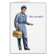 A vintage illustration of a retro milkman who visited all the bored housewives in the neighbourhood while on his daily rounds. Back in the day, there were always jokes about at least one child in the family secretly being the milkman's kid. So...Who's your daddy? The inside of the card is blank for your own message.