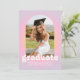 Retro inspired minimalist graduation invitation featuring custom photo, simple gradient design in pink colour.