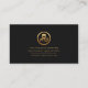 A simple minimalist design in black is accentuated by a pair of gold lines near the centre. Here lies your prestigious name alongside the job title above and a slogan caption near the base ; Change the caption remarks to the slogan to suit your own service needs.