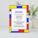 A fun and funky retro wedding invitation that's as fun as you are - a nostalgic look to the mid Sixties with a cool bold font paired with primary colours of yellow, blue and red outlined in black in geometric shapes in the style of Mondrian.