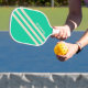 The Retro Mint Three Stripes pickleball paddle delivers a fresh, breezy look to the game, featuring a trio of cool mint tones that evoke crisp air and a touch of vintage charm. Perfect for players who appreciate both style and personalisation, this paddle invites you to add your name, giving each match a touch of your unique flair. With its refreshing green hues, it’s a standout on the court, blending classic style with a modern twist that complements any game.