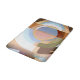 A retro Art Deco style bath mat with a modern abstract twist featuring a stylish painted graphic circle pattern in rich warm browns and soft powdery blues. Choose from 3 sizes.