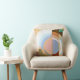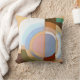 A retro Art Deco style square throw pillow with a modern abstract twist featuring a stylish painted graphic circle pattern in rich warm browns and soft powdery blues.