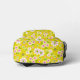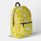 Bright and sunny throwback pattern features white flowers with pink and green centres on yellow background. Personalise this backpack with monogram or name in white and green oval