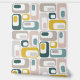 Bring a touch of retro flair to your interiors with this joyful wallpaper featuring a unique geometric design. The retro mood pattern combines calm and vivid colors that can transform any room into a stylish haven. Perfect for those looking to make a bold statement, this wallpaper is sure to impress your guests and enhance your decor. Explore the endless possibilities of revitalizing your environment and express your personality with this eye-catching design.