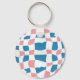 Retro Mod Pink Blue Chequerboard Abstract Key Ring