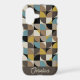 Retro Mod Squares Blue Brown Name Personalized