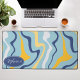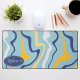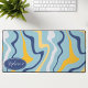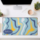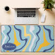 Retro Modern Abstract Marble Swirl Blue And Yellow Desk Mat