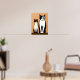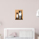 Poster in an illustration of a Mid-Century Modern inspired, black and white cat and kitten, on a mustard gold background