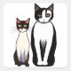 Retro Modern Black and White Cat and Kitten Square Sticker