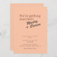 This retro modern wedding invitation features a warm coral peach background with bold, playful typography. The design blends a funky vintage style with a clean modern layout. It creates a joyful and stylish first impression for your wedding.