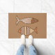 Doormat in a Mid-Century Modern, whimsical, retro fish pattern, in shades of tan, rust, beige, brown, and white, on a light cocoa brown background