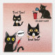 Retro Modern Funny Whimsical Black Cat - Pinkish Glitter Background