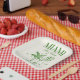 Retro Modern Green & Yellow Miami Bach Party Paper Plate