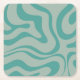 Retro Modern Liquid Swirl Abstract Pattern Teal Square Paper Coaster