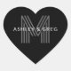 Retro Modern Name/s Editable Monogram Black & Grey Heart Sticker