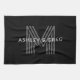 Retro Modern Name/s Editable Monogram Black & Grey Tea Towel
