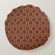 Retro Modern Orange Red Brown Hexagon Pattern Round Cushion