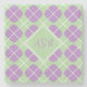 Retro Modern Purple Green Argyle Monogram Stone Coaster
