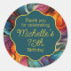 Add a festive finishing touch to your milestone birthday celebration with this bold round sticker featuring vibrant abstract florals in rich sunset hues. Centred with the message, "Thank you for celebrating Michelle’s 75th Birthday," this design is perfect for sealing favour bags, gift boxes, or envelopes. The elegant script font and colourful background bring energy and charm to your party details. Customise with any name or age to create a sticker that's just right for your celebration.