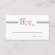 This mid-century modern escort place card features retro typography that reads "Mr. & Mrs." with lines below for the guest's name and table number.