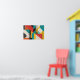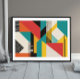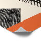 This bold geometric abstract art piece combines retro charm with modern design. Featuring blocks of teal, mustard yellow, burnt orange, black, and red in clean, angular compositions, the print showcases texture through lined patterns and intersecting shapes. Ideal for adding a playful yet structured aesthetic to any modern or mid-century inspired space.