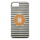 A cool retro iPhone 7 case with a weathered pattern of black and white stripes. Personalise with your initial inside the orange label.