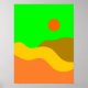 This stylish poster features a colourful and bold illustration of a retro mountain landscape