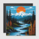 Retro Mountain Landscape Illustration Red Blue