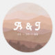 Retro Mountains and Forest Pink Wedding Monogram Classic Round Sticker
