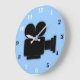 RETRO MOVIE CAMERA WITH BLACK AND WHITE NUMBERS LARGE CLOCK