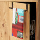 The stars are out in full force on this Retro Movie Theatre Kitchen Towel--both the stars in the night sky and the stars on the silver screen. This 1960's style, minimalist art design features the exterior of a classic movie house from the Golden Age of Cinema. The red building has a brilliantly lit marquee, which says, "NOW SHOWING," in red letters. Beneath the marquee, a theatre employee is ready for a crowd of movie going film buffs, which are sure to be lining up in droves. The silhouette of the clean cut, theatre worker is just visible through the aqua glass of the box office ticket booth. Not a kernel of popcorn can be found on the spotless grey sidewalk. Grey double doors flank the ticket booth. The front of the building displays black and white movie posters surrounded by dramatically lit frames. One poster shows star crossed lovers in a dramatic scene and the other shows a swimsuit clad starlet whose career is as bright as the sun she worships. This product is from the brilliant minds at Zazzle's StrangeLittleOnion, who have brought you such cult classics as Retro Pool Party, Film Noir Martini and Retro Space Age Cartoon Couple. Critics agree; if you can only purchase one design this season, make it this one (or any of the other spectacular StrangeLittleOnion designs)!