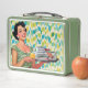 This is a standard metal lunchbox that appears to work just fine. We designed this box ourselves with an uploaded photo and custom text on the front and back. It looks absolutely beautiful except the front of the lunchbox is not centered like it shows in the photo. The print borders don't align with the inset flat part of the box where the preview photo online showed it perfectly centered in there. The back looks nice and centered though.