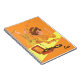 This notebook features a retro image of a girl listening to records. The background colour, and text, can be customised as desired.