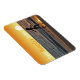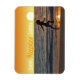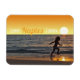 Flexible refrigerator magnet depicting an image of a little girl running through the waves on the beach during a sunset in Naples, Florida, finished in a retro style.