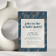 Celebrate a new arrival with this modern baby party invitation featuring bold navy text and a geometric border in cool blue and grey tones. The clean and gender-neutral design makes it perfect for any kind of baby celebration, from casual gatherings to stylish showers. Personalise with your event details to make it uniquely yours.