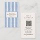 Retro Navy Blue Hand Drawn Stripes QR Code Unique Business Card