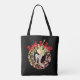 Unleash your inner rockstar with this bold and electrifying rock music art tote bag, featuring a dynamic quitarist silhouette. Encircled by a cascade of vintage-styled geometric elements, this design fuses retro neon vibes with modern flair. The striking red bold typography "Rock & Roll" typography adds a rebellious punch, making this bag not just an accessory, but a statement.