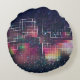 Retro neon lights and geometric seamless pattern round cushion
