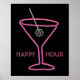 Made to look like a vintage bar sign, the retro design on this poster print features a neon pimento-stuffed olive on a toothpick floating in a pink neon martini glass. With one word on each side of the glass’ stem, the phrase “HAPPY HOUR” is spelled out in open text in the same pink. The customisable text can easily be changed to say whatever you like or can be deleted altogether. From my original digitally created image.