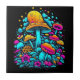 Retro Neon Mushrooms and Flowers Ai Art Tile