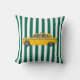 Throw pillow with bold, graphical retro taxi on a green striped background. Perfect for dorm rooms.
