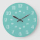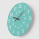 This retro style wall clock features a beautiful aqua or robin egg blue colour with white numerals.